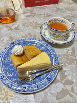その後に温かいルイボスティーと黒豆茶と共に、叔母さんの手作りのバナナケーキとレモンのムースも美味しかったです???